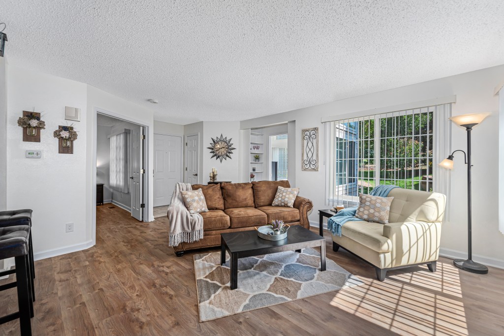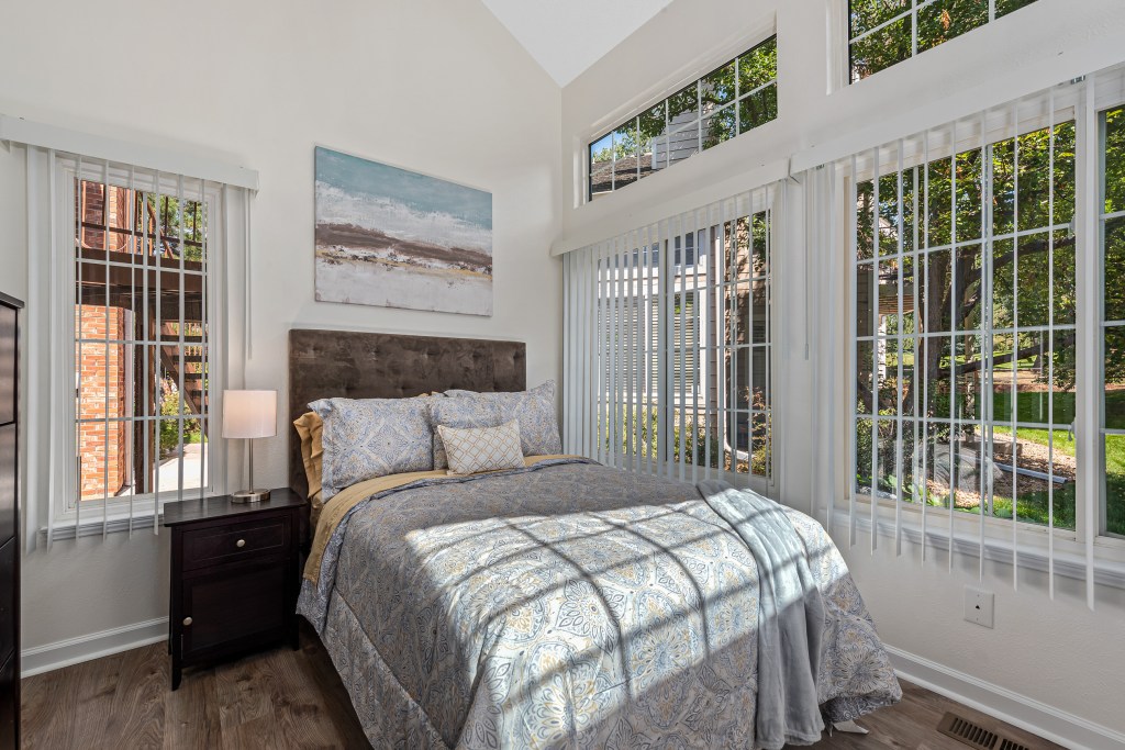 The smaller of the 2 bedrooms has vaulted ceilings and a ton of windows. this room can be converted into an office if guests prefer. Both bedrooms have decent sized closets. There is a storage closet off of the back patio.